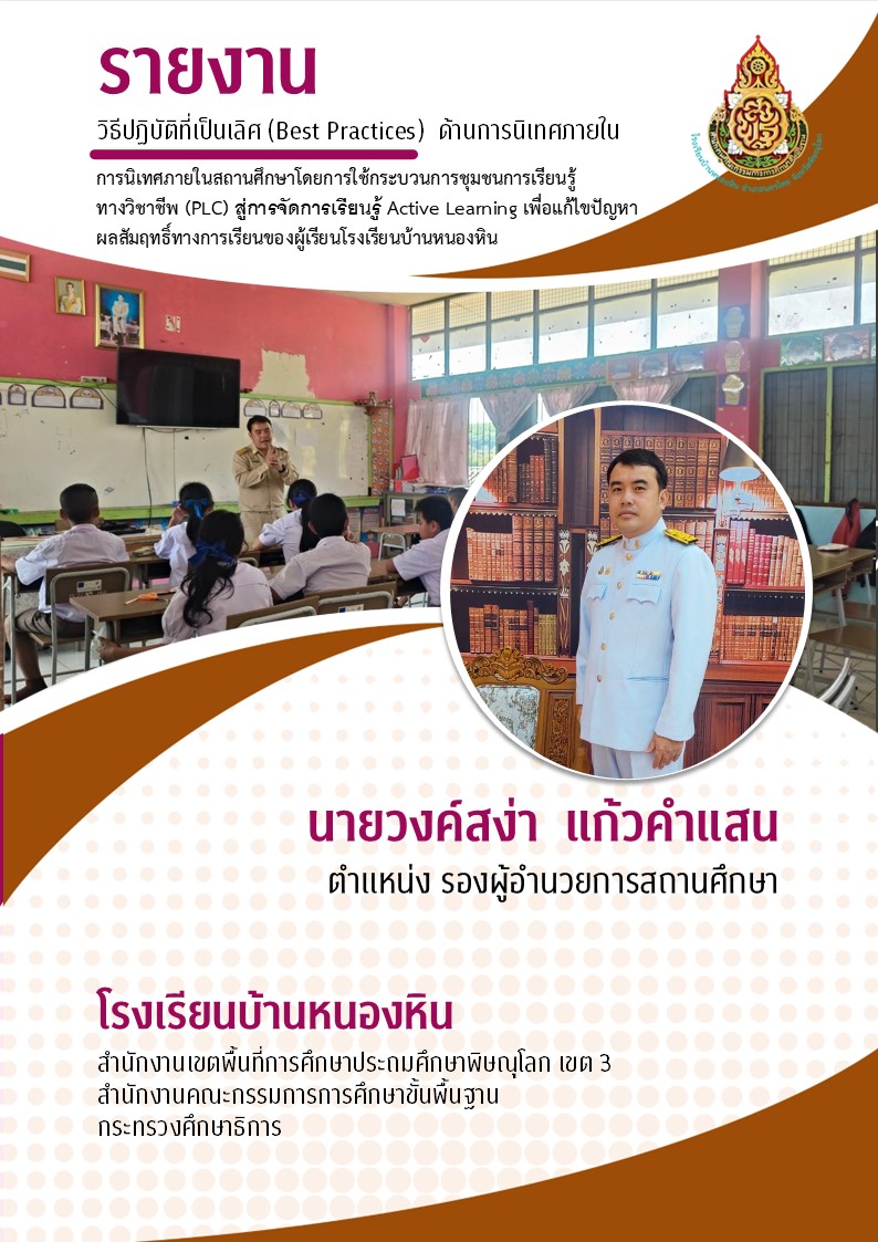 การนิเทศภายในสถานศึกษาโดยการใช้กระบวนการชุมชนการเรียนรู้ทางวิชาชีพ (PLC) สู่การจัดการเรียนรู้ Active Learning เพื่อแก้ไขปัญหาผลสัมฤทธิ์ทางการเรียนของผู้เรียนโรงเรียนบ้านหนองหิน |